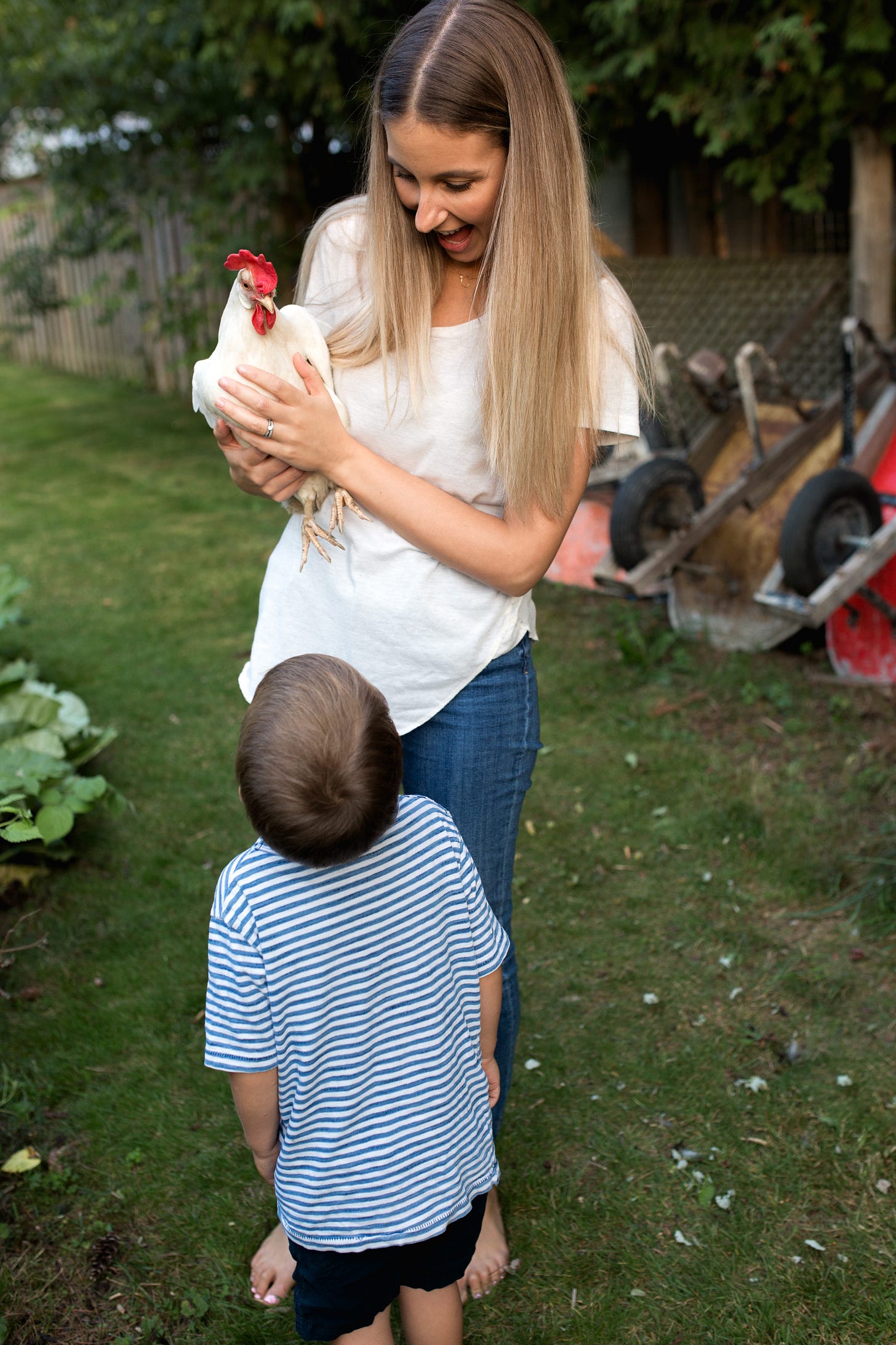 The kids believed in their existence so wholeheartedly that elaborate traps were set to catch the slippery night bird which sadly, always failed. Everyone knows they are just too clever for those childish pranks. Besides, the chicks were too busy partying and socializing with their flock, which is what I told them each time a trap came up empty. After another fruitless capture, the kids called a meeting. Conversations were had, ideas were shared, they even cross-examined the dog which dejectedly resulted in zero leads. They took matters into their own hands and a new plan was set: they were going to camp out in the living room and wait. The living room seemed to be where all the action and feathers were. They waited and waited. And, eventually they fell asleep. They never did see a real night chicken, but they did find more feathers! If you ask them, they’ll tell you the night chicken is absolutely real but very hard to pin down, like Nessie or Bigfoot.